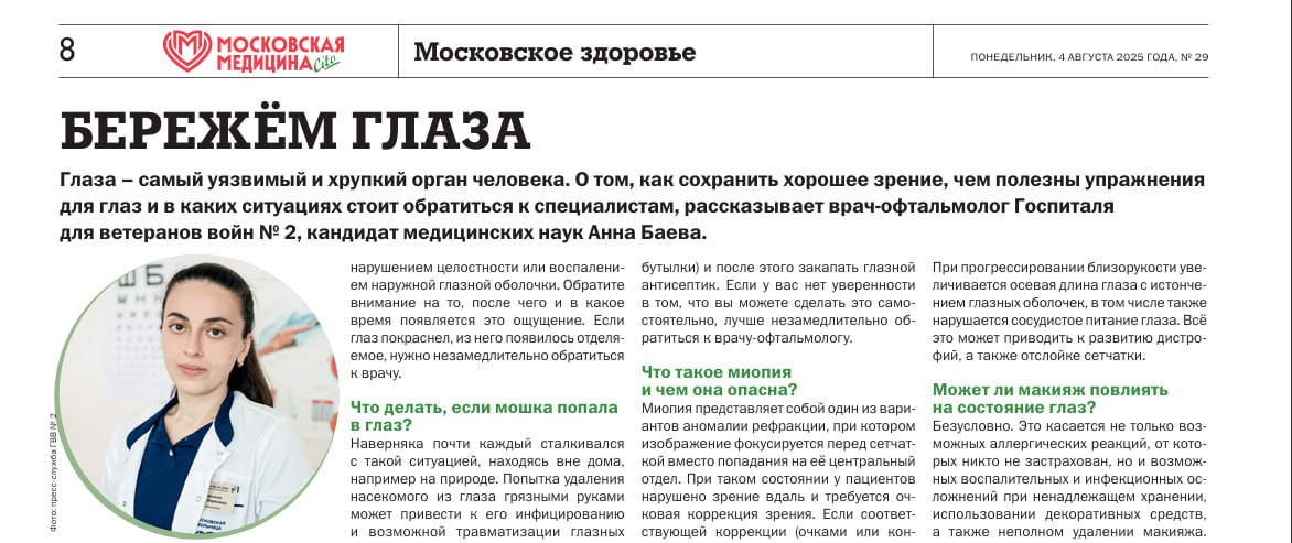 Эти и другие рекомендации, полезные для здоровья глаз, Анна Борисовна дала в 29-м выпуске газеты «Московская медицина»